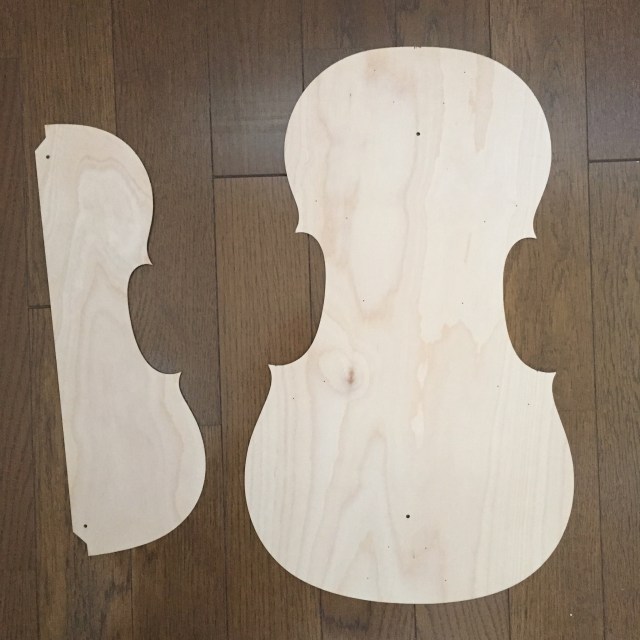片方はヴァイオリン、もう一方の大きい方はヴィオラなので、だいぶ大きさは違いますが、今日、ここに書きたいのは楽器の種類についてではなく、楽器を作る上でのテンプレート(元型)の種類のことです。