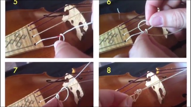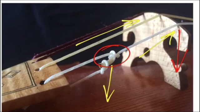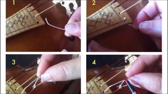 このガット弦の結び方、何の目的でこのようにされたと思われますか?