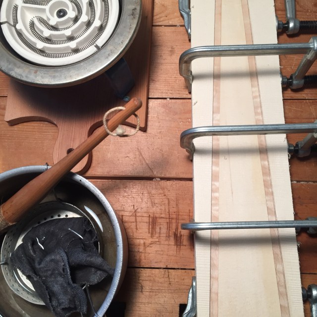 ヨーロッパでは、少なくともイタリアでは「膠が歌う」と言い、膠がよい音を奏でる濃度まで薄めて使うことが一般的です。しかしながら、精製され、防腐剤などが加えられた日本国内で流通する膠の多くは歌うほどに薄めてしまうと強度が不足してしまうということをこれまでたびたび経験してきました。