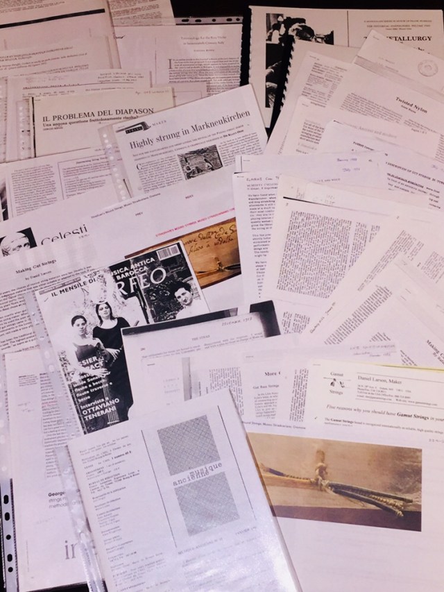 20年ほど前から、ガット弦についていつか勉強したいと考え、手当たり次第に資料を集め、いくつかは目を通してきました。