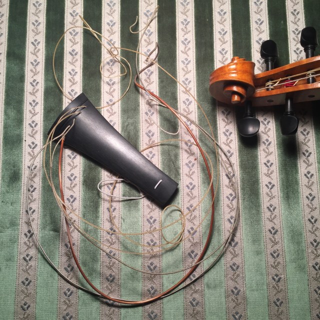 昨日、初めてヴィオロンチェロ・ダ・スパッラにシルク弦を張りました。