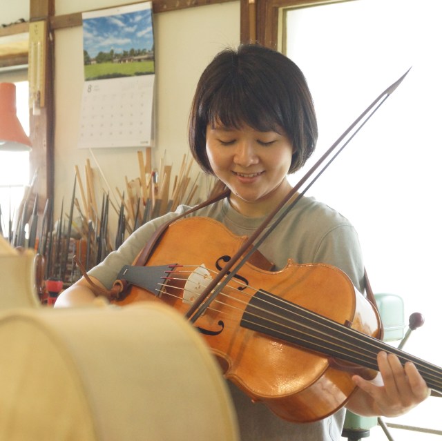 昨日は、バーゼルにてアマンディーヌ・ベイエ Amandine Beyerさんのもとで古楽を学ばれている阪永珠水さんが、ご依頼いただいたバロック弓(クリップ・イン・タイプ)の受け取りのためにお越し下さいました。