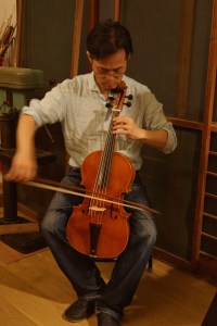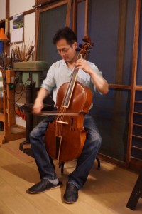 今日はバロック・チェリストの髙橋弘治先生が、ピッコロ・チェロを携えて当工房にいらしてくださいました!