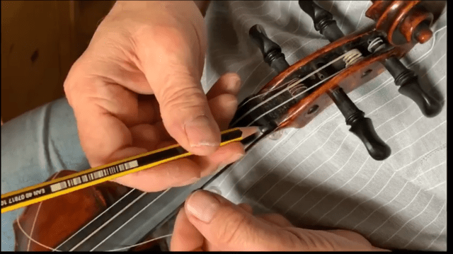 弦を張る前にナットに柔らかい鉛筆(6B以上)を刷り込むことをお忘れなく。