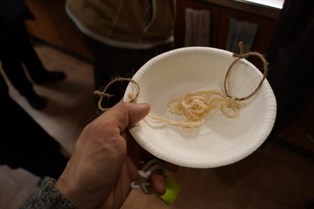とても丁寧に準備されたワークショップで、一つ一つの工程がとても楽しく、木村さんの熱意とご自身が楽しんで弦を作られている様子が伝わってきました。木村先生の熱意が伝わり、参加者の皆さんの熱気で水洗いしたガットが乾かないのではないか(笑)と思われるほどでしたが、とても楽しい時間を過ごさせていただきました。