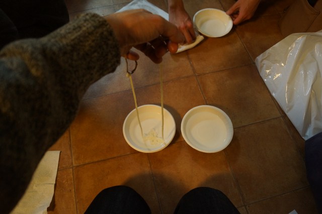 今年最後のワークショップ、勉強会は、天野寿彦先生の主催の忘年会兼ワークショップとして行われたガット弦作りでした。