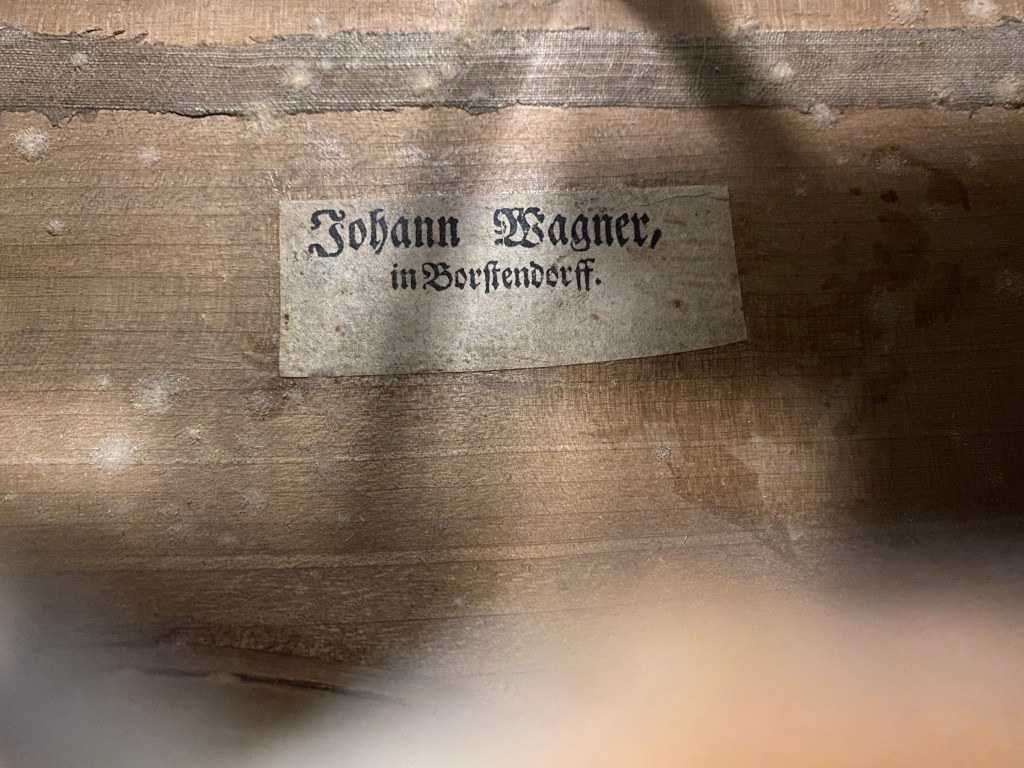 調査を行なったのは楽器はザクセン(ドイツの地域名の一つ)のBorstedorfボルステンドルフの製作家Johann Wagner(1703-1762)のものと伝わるもので、博物館に所蔵されたのは1883年であったことが記録されているものです。