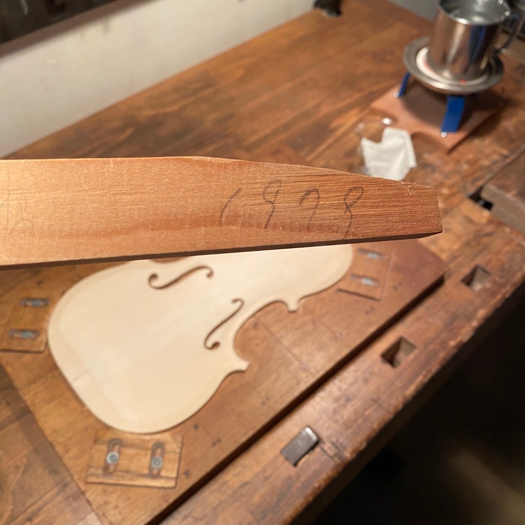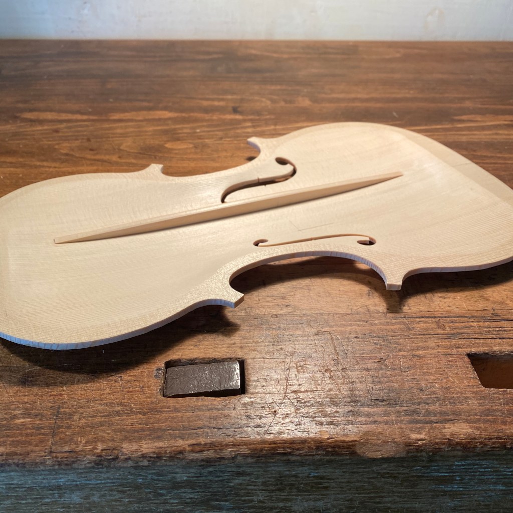 バロック・ヴァイオリンのバスバーは歴史的に見ても必ずしも現代のそれより短い必要はないのですが、今回は短いプロポーションを選び、高さもだいぶ低くしました。