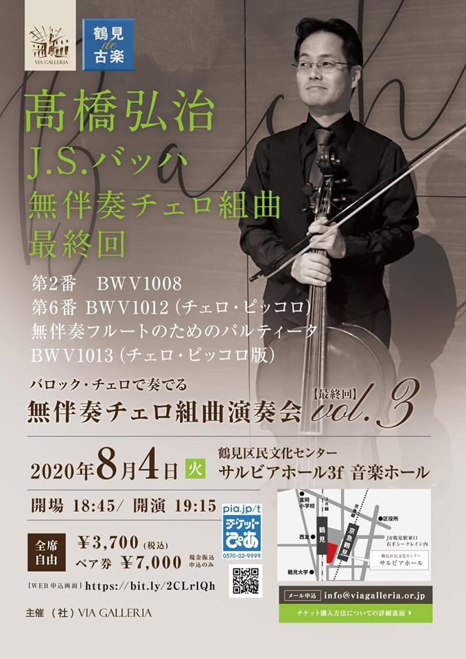 このところ演奏会になかなか行けず、さびしいかぎりですが、今夜は久々に髙橋弘治先生のチェロ無伴奏を聴きに出かけます♪