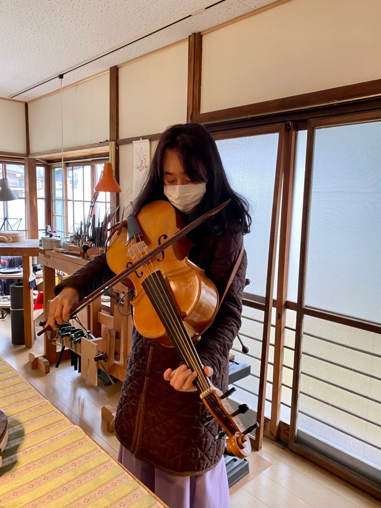 昨日は、Christian Academy in Japan インターナショナルスクール・オーケストラ、ディレクターの先生が肩掛けチェロの試奏とメンテンナンスを終えた弓の引き取りにお越しくださいました。