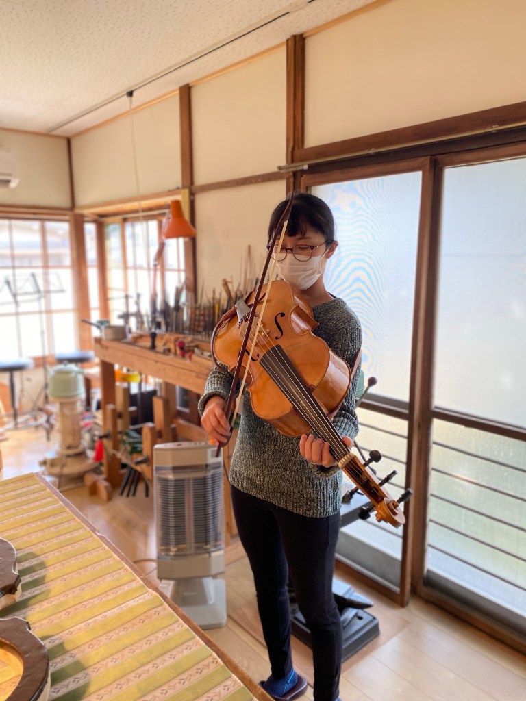 先週末は、ヴァイオリニストの桑原香矢さんと、作曲家で夫君の高橋渓太郎さんが楽器調整のためにご一緒に工房にお越し下さいました。長くヨーロッパで活動されてきた音楽家の方々にこんな場所で出会うのはいつもとても不思議な気がします。