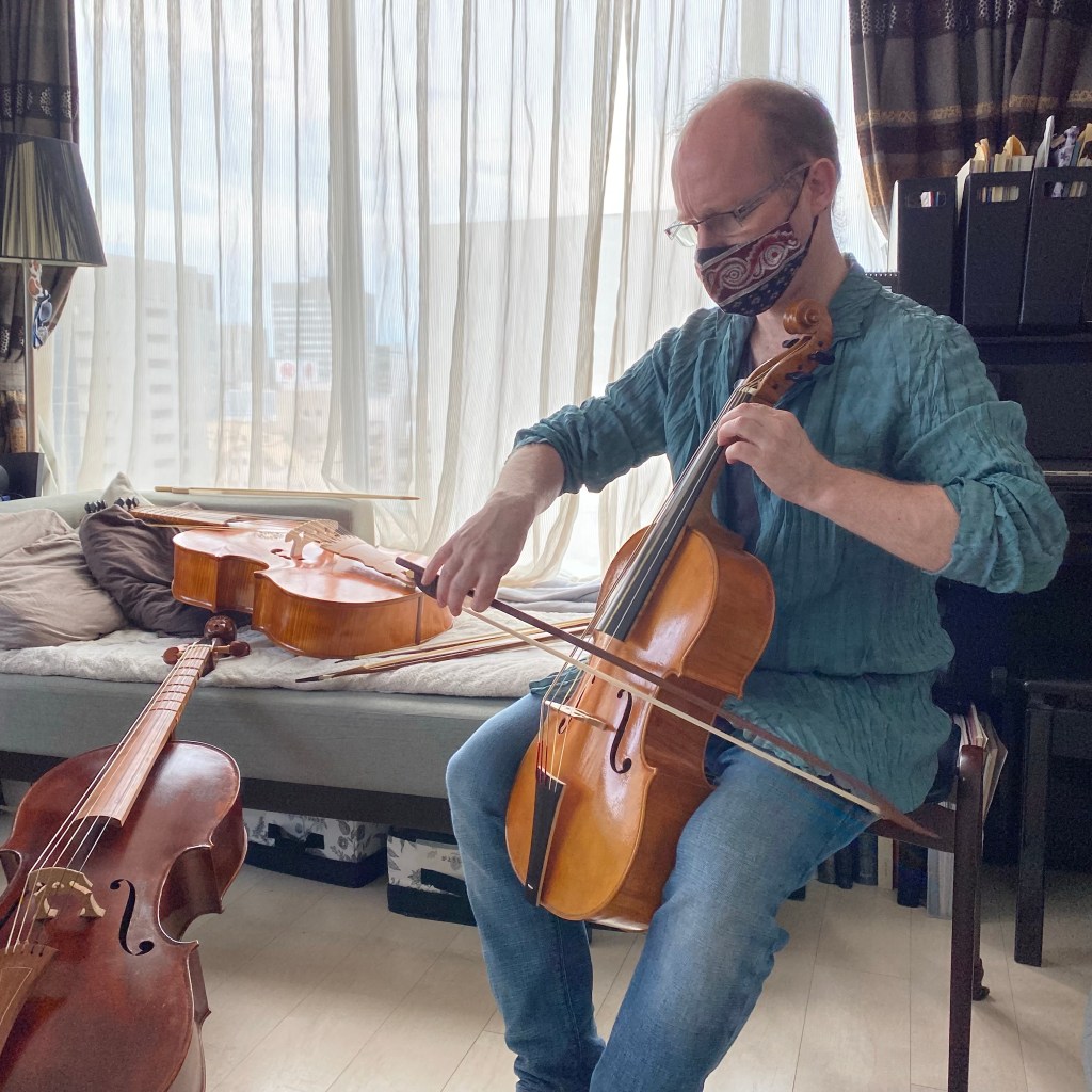 YouTubeでフレットをつけたアルペジョーネのような5弦楽器を演奏されているのを拝見し、他では見たことがなかったために興味をもって訪問させていただきました。