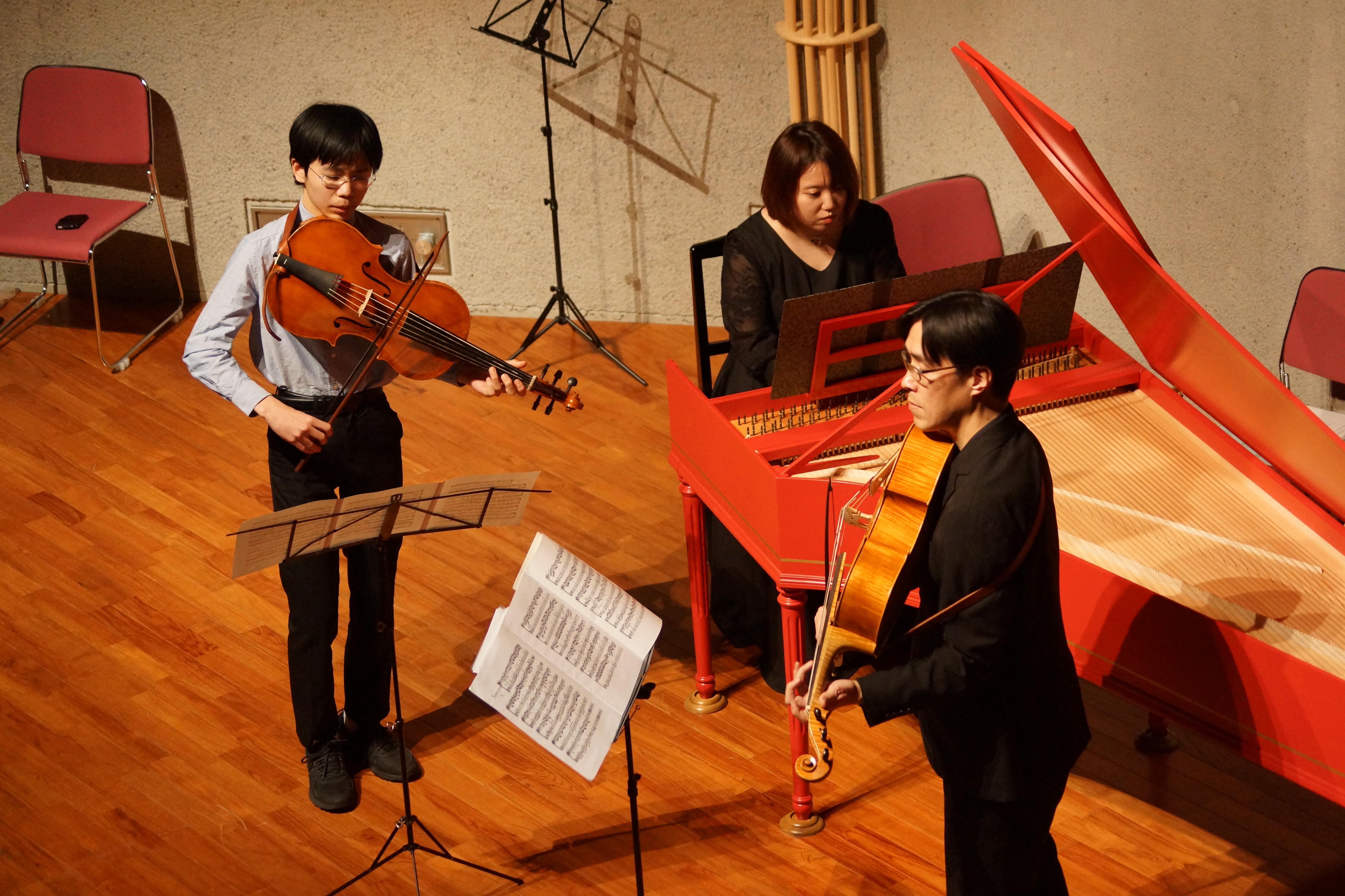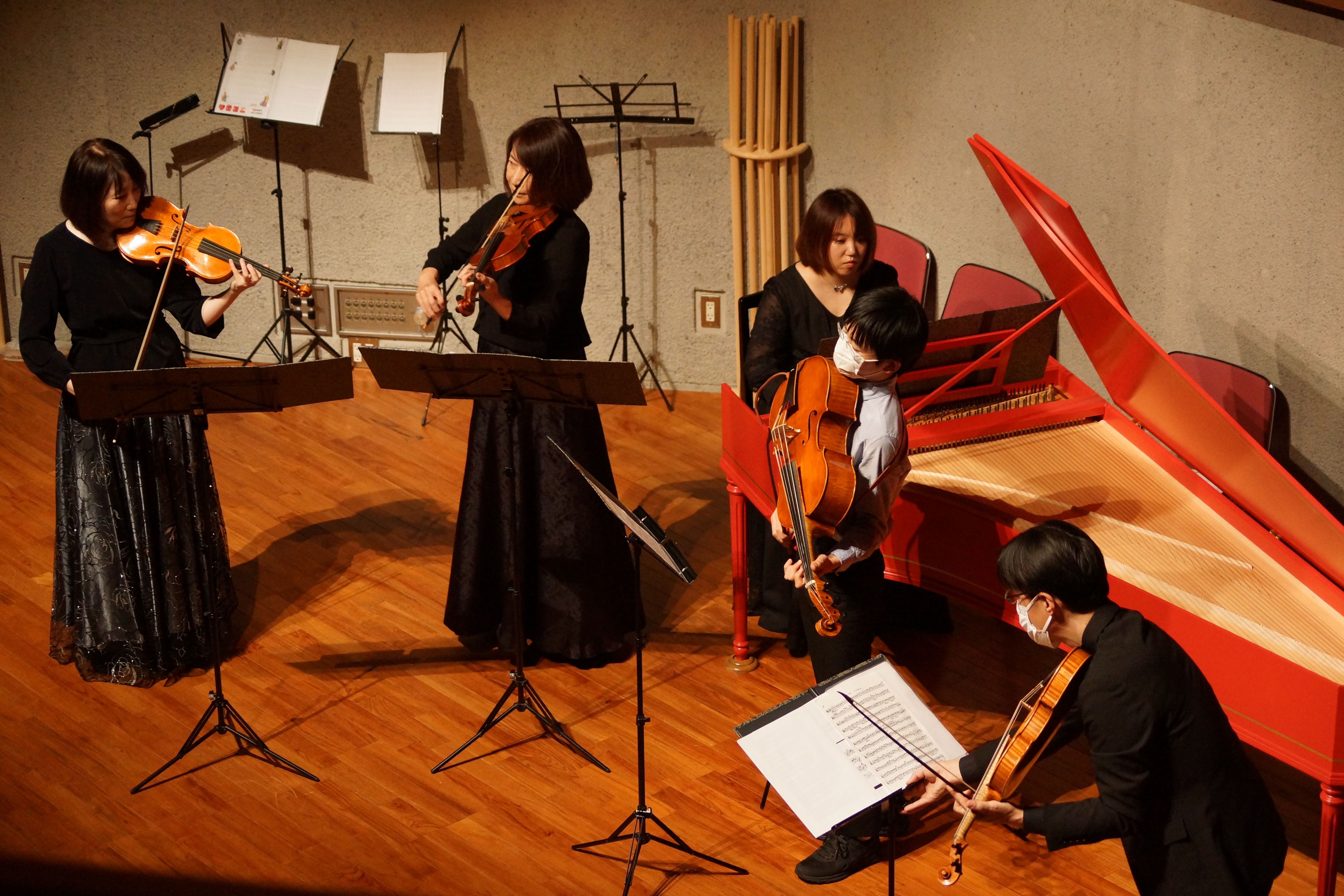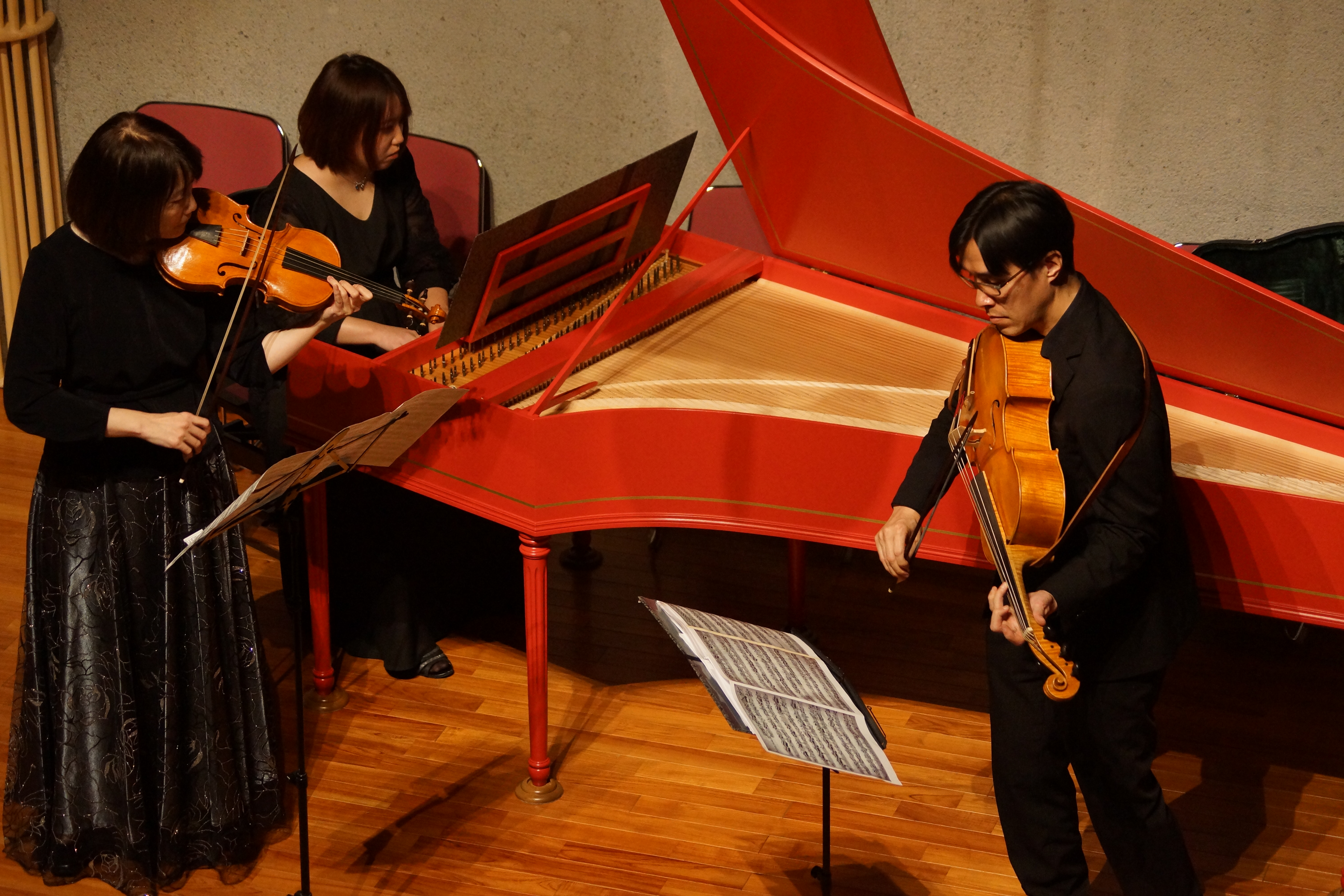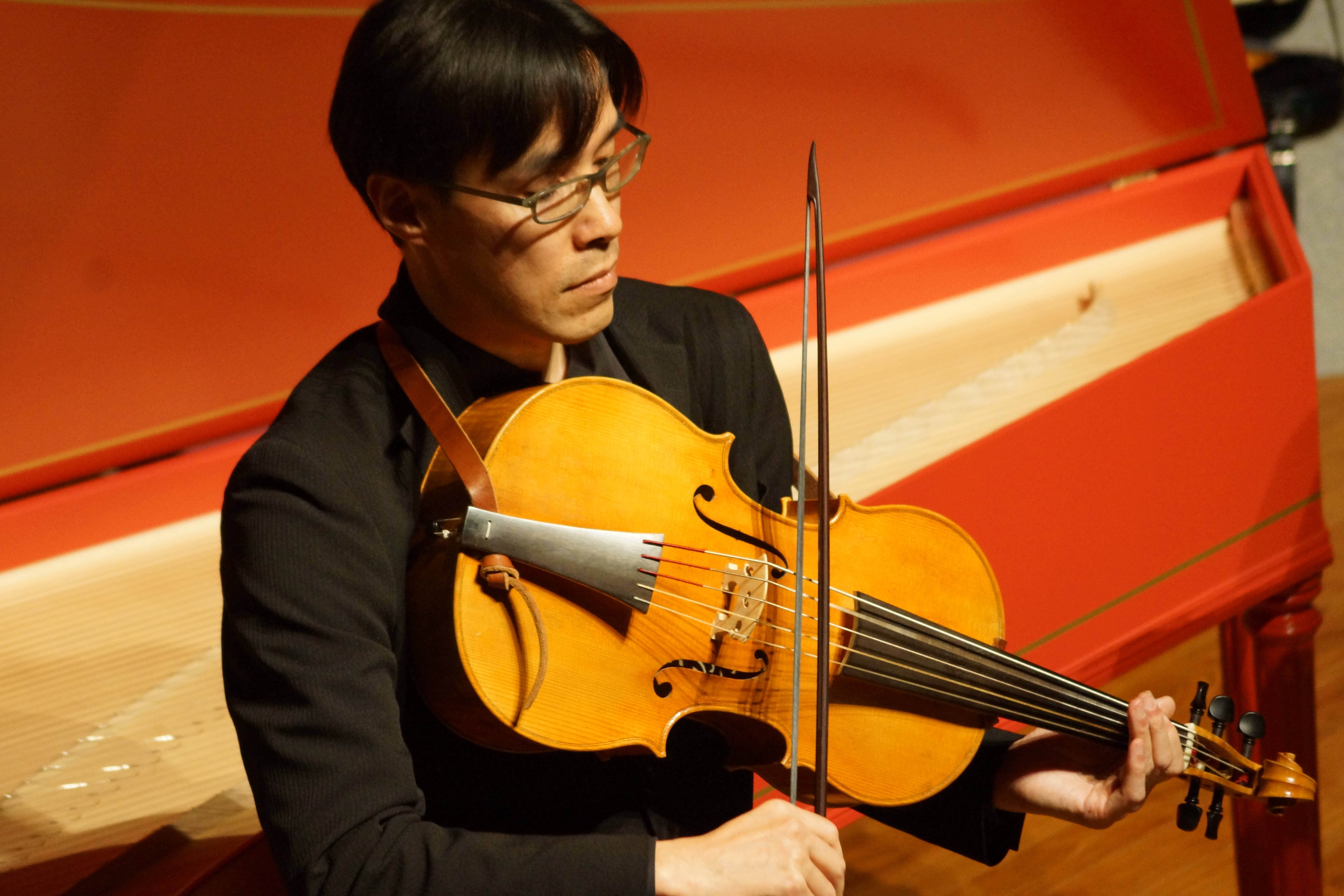(スパッラのよいところは、あらゆる意味で控えめであること。これまであったヴァイオリンやチェロ、そしてももちろんヴィオラもスパッラの存在によって薄れることなく、新しい楽しみが加わってきます。写真は発表会の中でヴァイオリンとチェロを助演されている天野先生と武澤秀平先生)