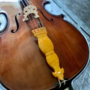 チェロはテールガットが足元にくるので、1つの糸だけですべてが固定されていると、破断した時がこわいと考えました。