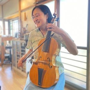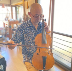 梶山さんは以前にモダンチェロをバロックに限りなく近い仕様にして弾いてみたいというご要望でセットアップをさせていただきましたが、その点検も兼ねてお越しくださいました。チェロの調子はとてもよく、ふだん習われているモダンチェロの先生からもOKをいただけたそうです。