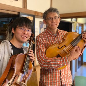 先日、バロック・ヴァイオリニストにして、オーケストラ ファン・ヴァセナールを率いる赤津眞言さんと、今回ご一緒にツアーをされている今田利さんが工房にお越しくださいました。