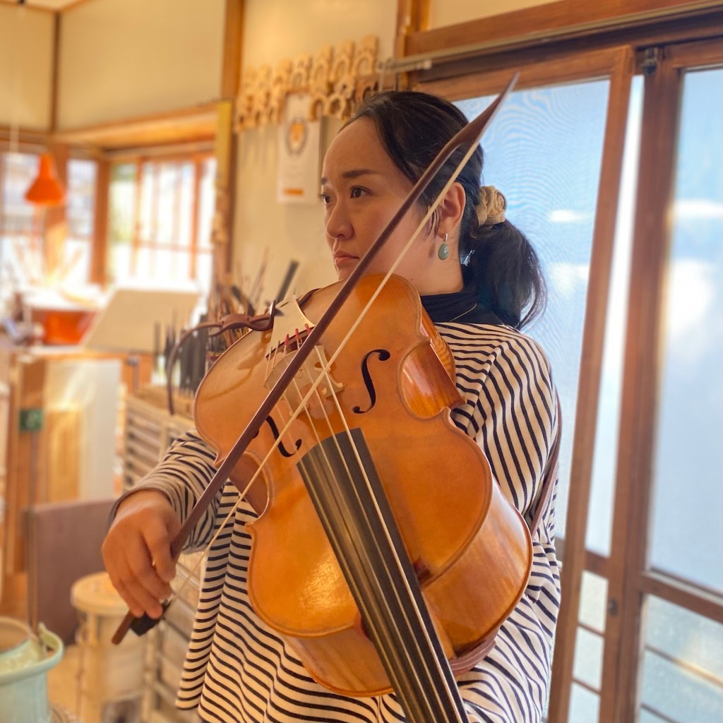 先日は、モダン・チェリストで近郊の新座市でArcoヴァイオリン・チェロ教室を営まれている森崎冬菜先生が工房にチェロのメンテンナンスにお越しくださいました。